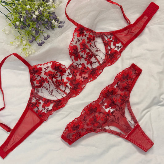 Sold outBlood Red Net Bra Set